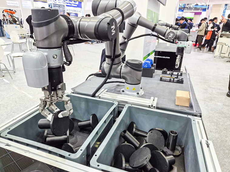 Tesollo and Techman said their joint offering is suitable for high-mix, low-volume production. For example, it can be used in processes such as one-kit plate operations that transport multiple parts at once for assembly in the automotive and electronics manufacturing industries, which are important in South Korea.